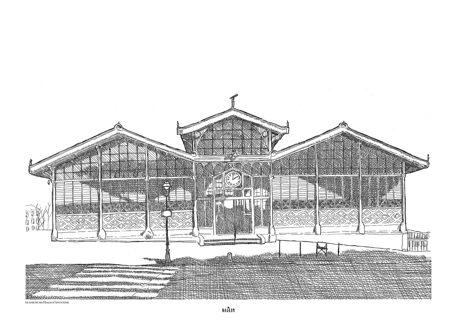 illustration des fameuses Halles d'Angoulême, de jour, de nuit ou bien en monochrome !!