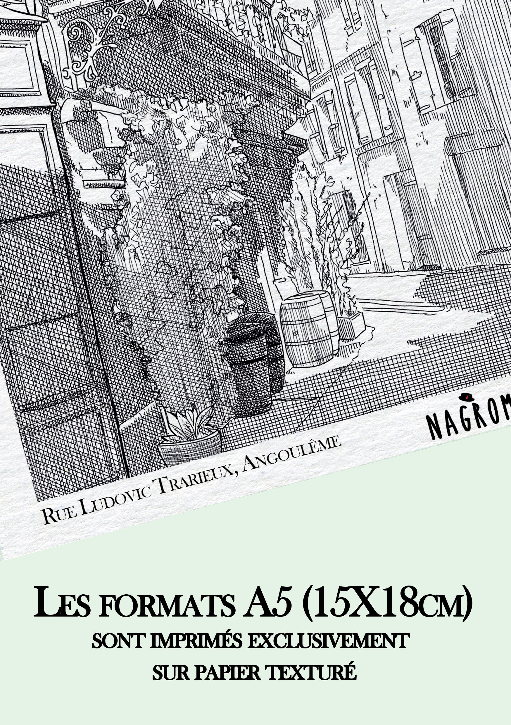 - Papier blanc texturé 320gm2 pour les petits formats en 15X18cm (A5)