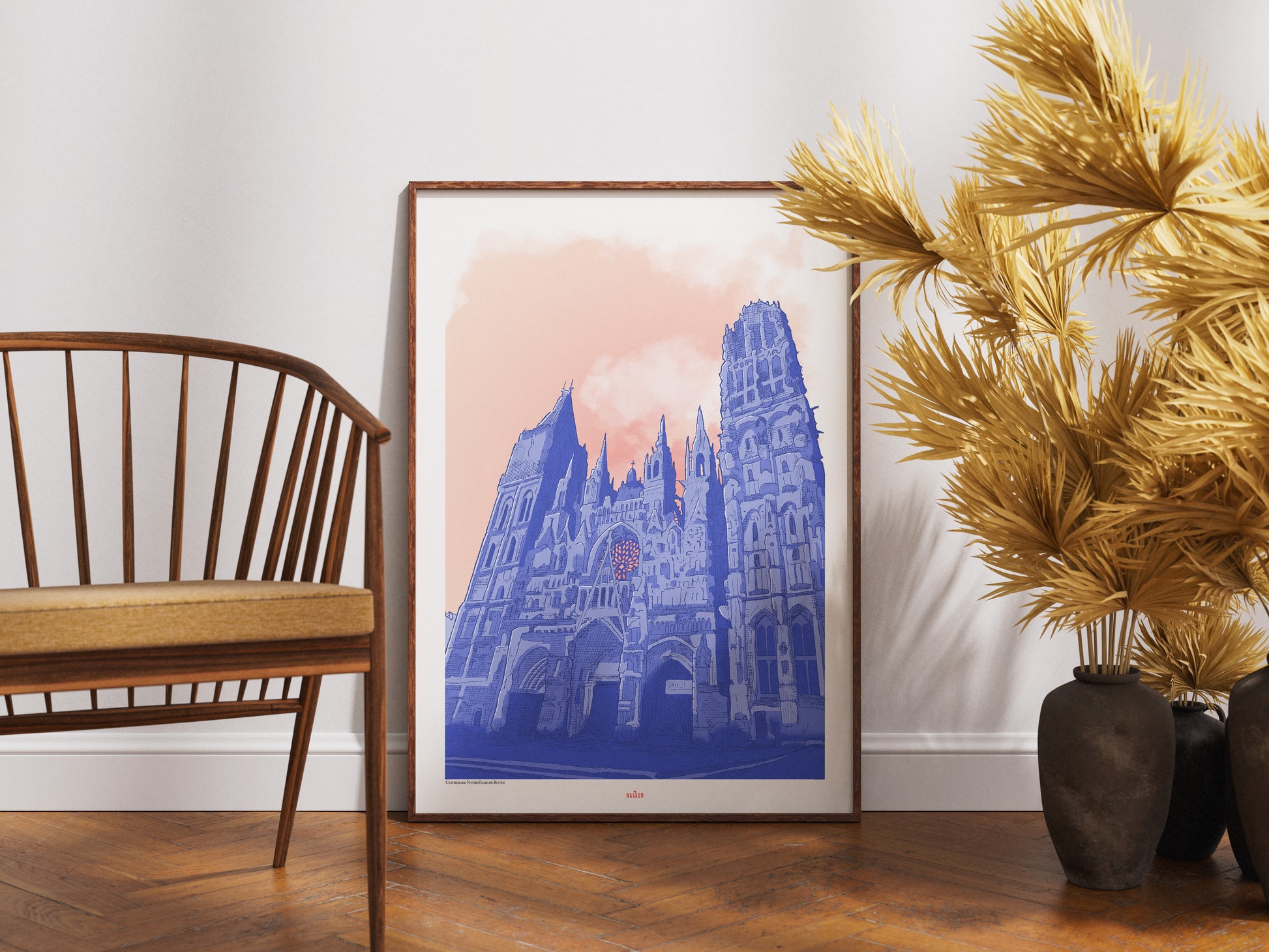 Vue de la place de la Cathédrale Notre-Dame de Rouen. Elle possèderait la façade d’église la plus large de France...