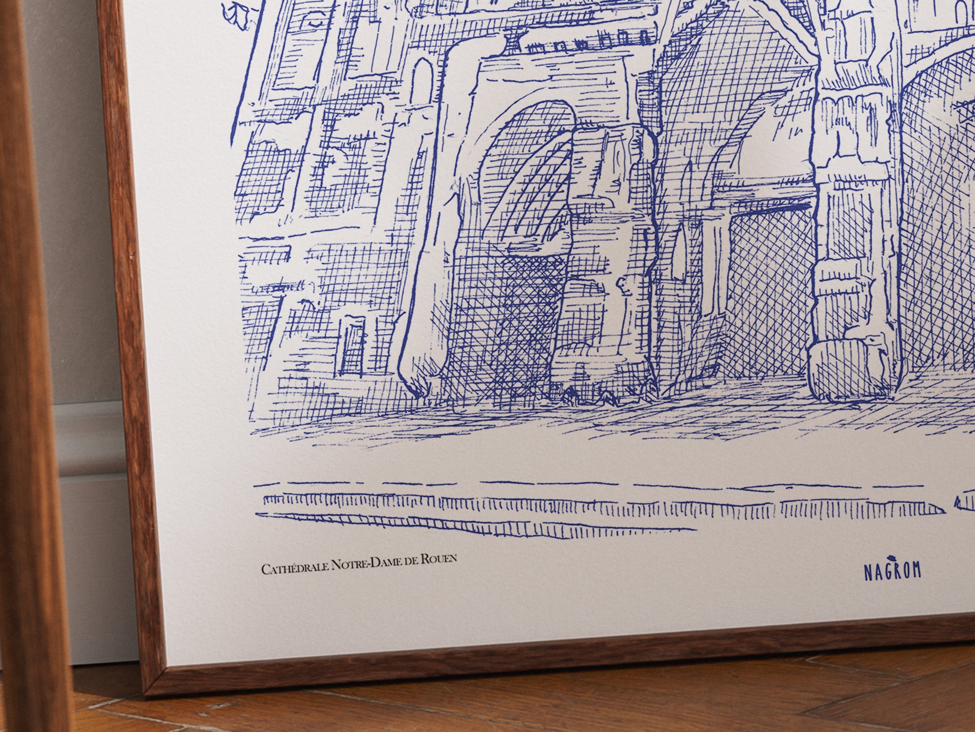 Vue de la place de la Cathédrale Notre-Dame de Rouen. Elle possèderait la façade d’église la plus large de France...