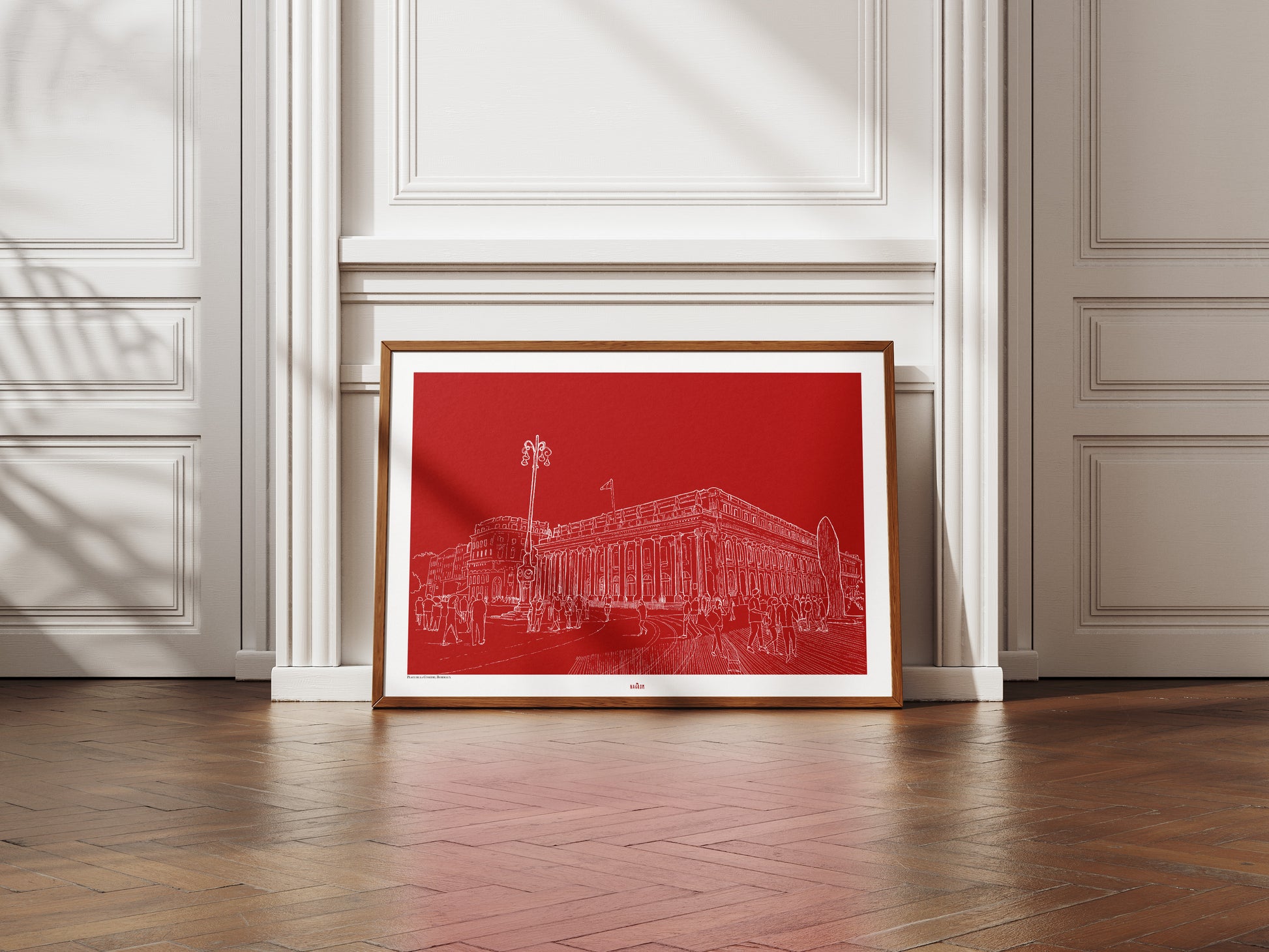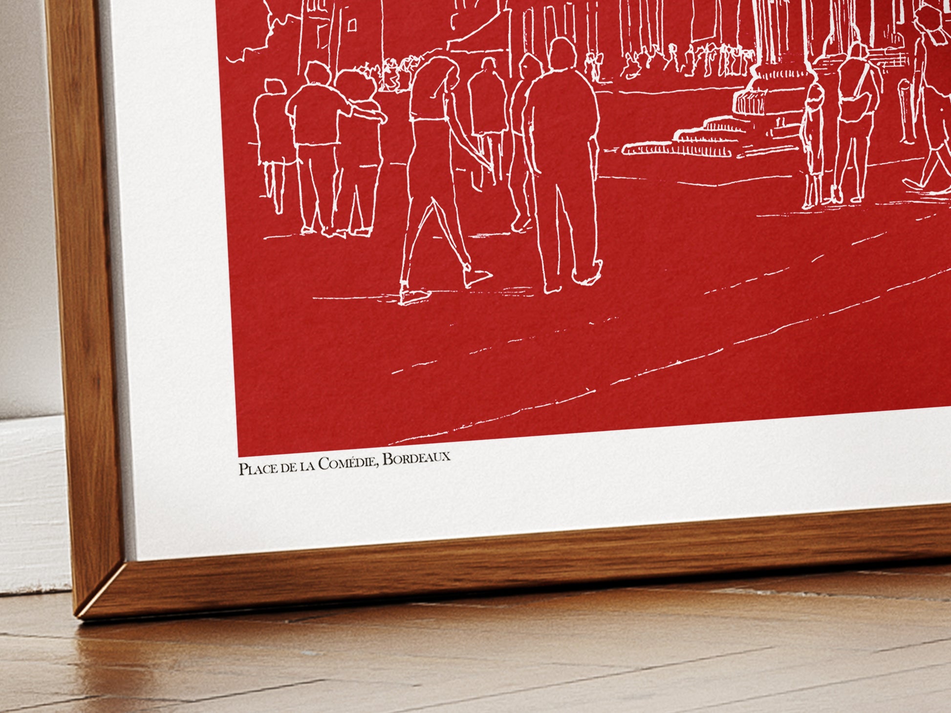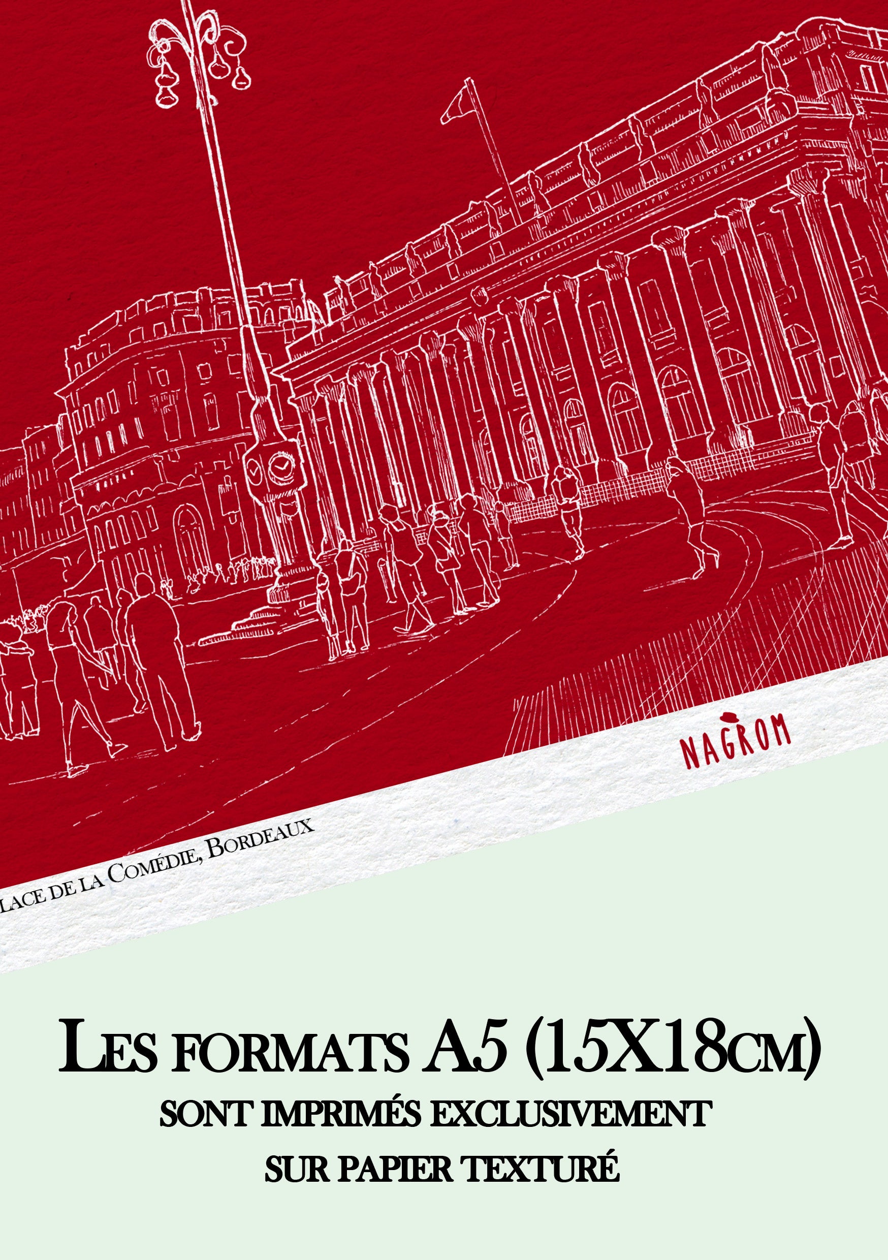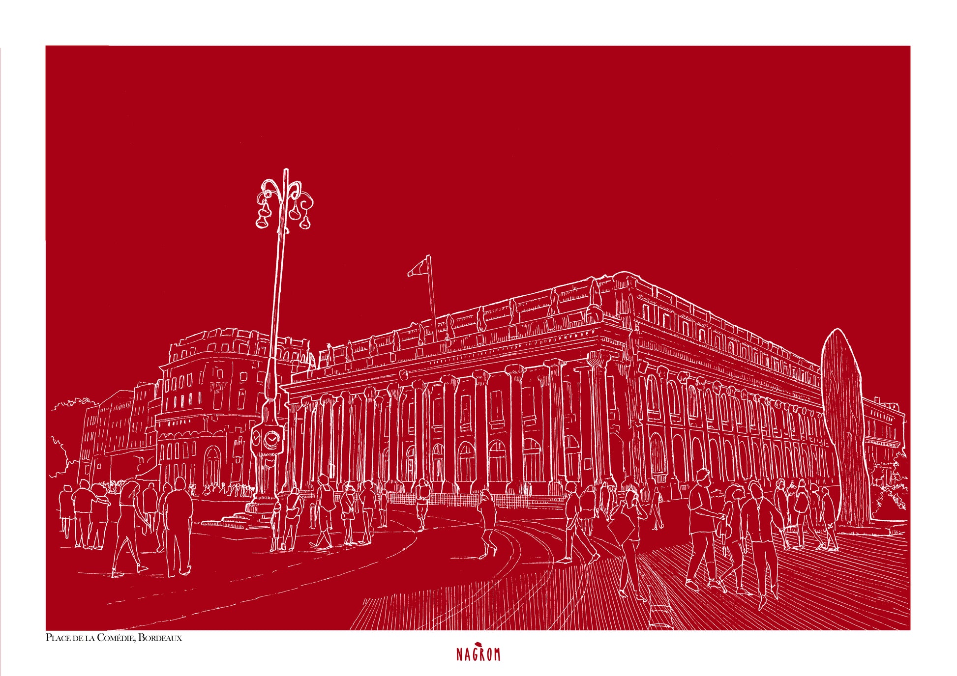 Place de la Comédie en blanc sur fond bordeaux uni, Bordeaux