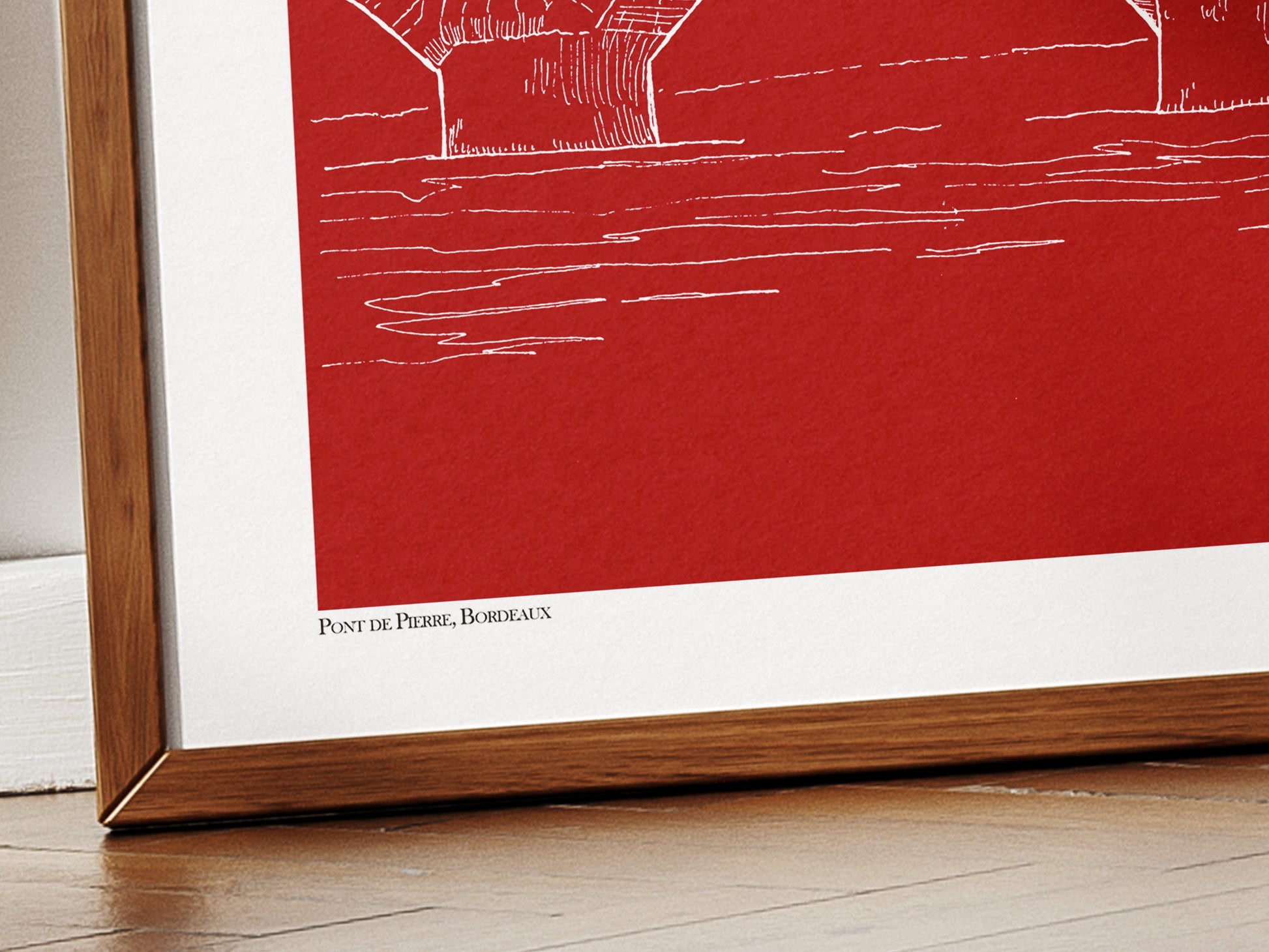 Pont de pierre en blanc sur fond bordeaux uni, Bordeaux